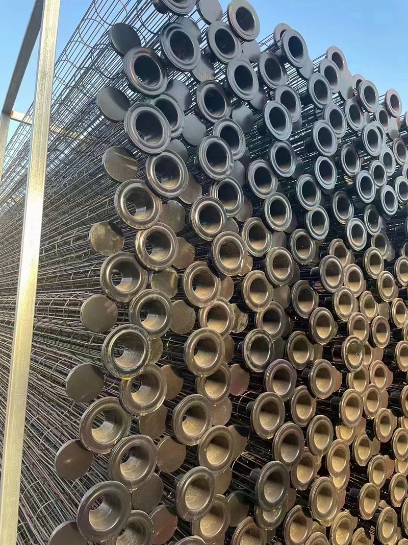 除塵布袋骨架是采用直徑為3-4個的碳鋼絲或不銹鋼絲為原材料,由縱筋和支撐環縱橫疊交焊接成的籠形件。除塵布袋骨架安裝在脈沖除塵器和氣箱式脈沖除塵器中的花板孔上,用來支撐除塵濾袋防止塌陷,有助于粉塵的清除和提供除塵效率。粉塵是附著在除塵濾袋的外表面,含塵氣體經過除塵器時,粉塵被捕集在濾袋的外表面,而干凈氣體通過濾料進入濾袋內部后經風機排出。